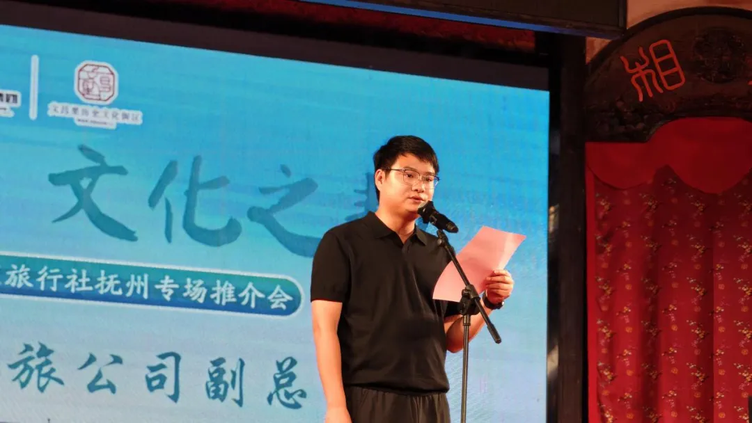文昌里文旅公司副总经理付刚出席活动并致辞,对远道而来的旅行商代表表示热烈欢迎。他详细介绍了文昌里作为汤显祖故里的临川文脉底蕴,重点推介街区沉浸式戏曲体验、特色文旅业态及《寻梦牡丹亭》实景演出等核心产品,希望以此次推介为契机,深化跨区域合作,共享文旅资源、共拓旅游市场、共谋协同发展。