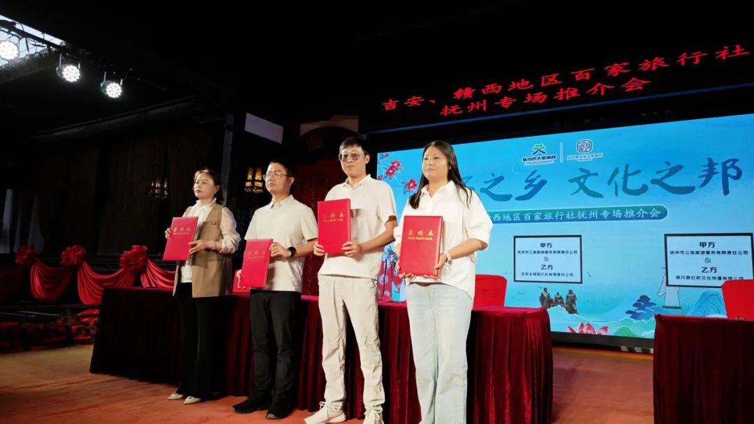 活动现场举行合作签约仪式,抚州市三翁旅游服务有限责任公司分别与万安旅发旅行社有限公司、吉安全域旅行社有限责任公司、遂川县红岩文化传播有限公司达成战略合作,双方将在客源互送、线路共建、品牌推广、市场运营等方面深化合作,进一步畅通客源渠道,为抚州文旅产业提质扩容注入强劲动力。