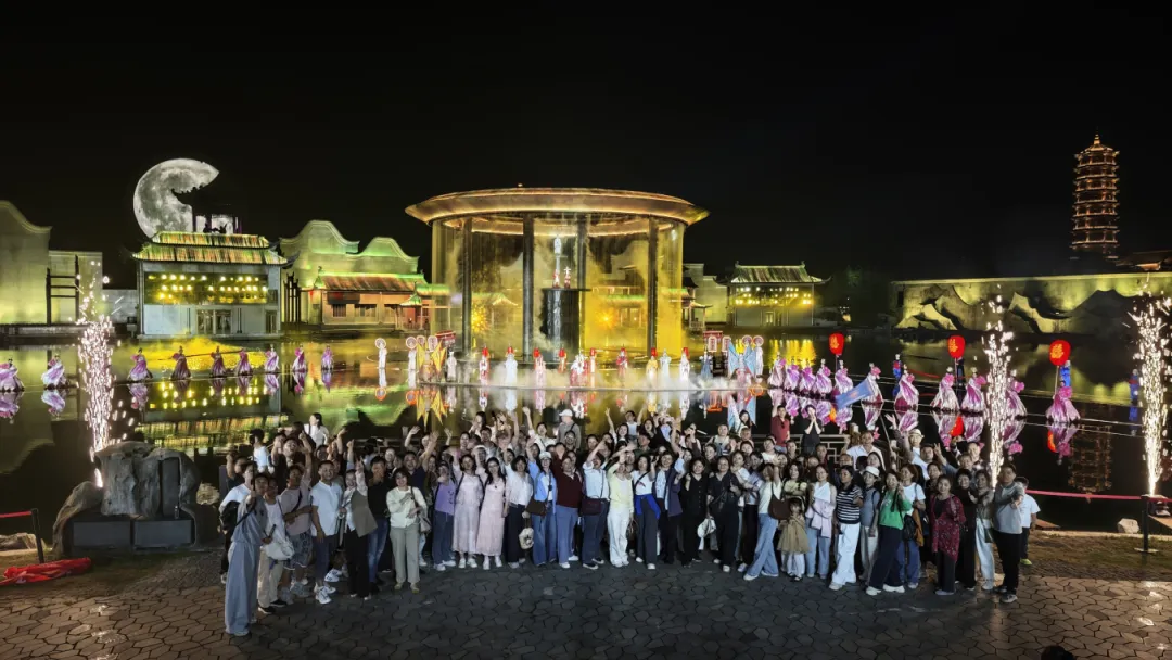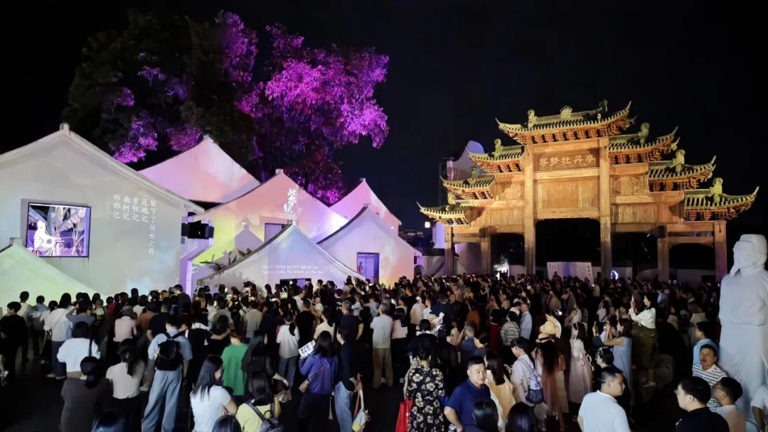 夜幕之下,大型实景演出《寻梦牡丹亭》唯美上演。依托亭台水榭实景布景,融合光影艺术与戏曲演绎,生动再现杜丽娘与柳梦梅的千古爱情故事,沉浸式的戏曲盛宴让嘉宾深切体悟汤显祖戏曲文化的浪漫意境与独特魅力。