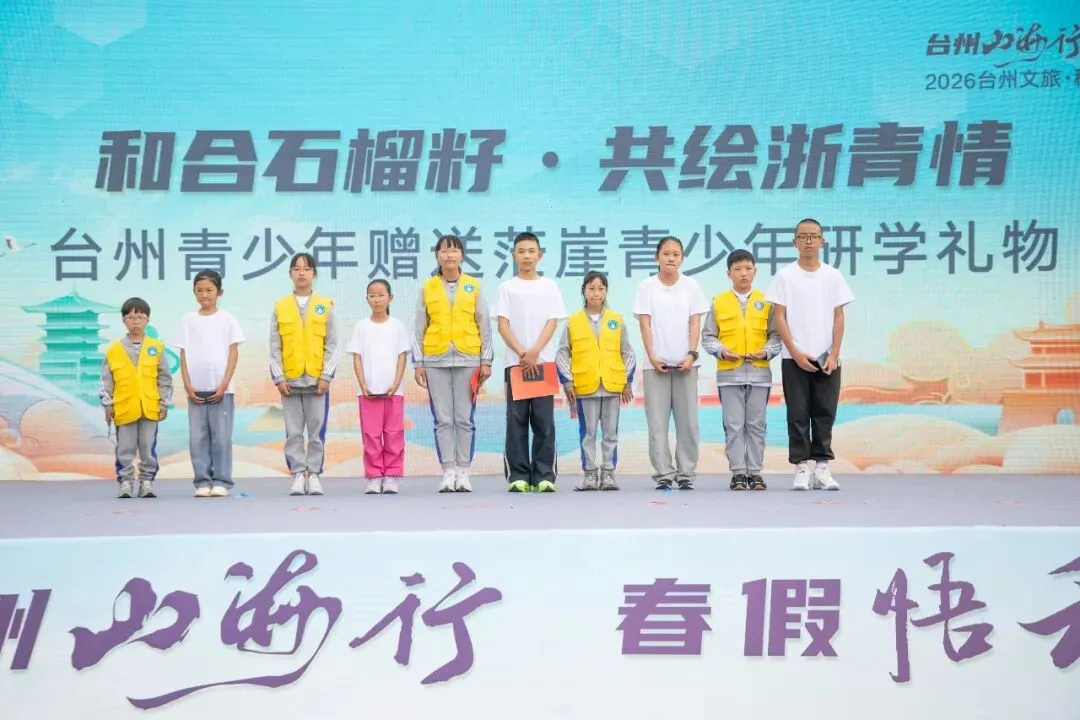 值得一提的是,现场特别安排了“和合石榴籽”互动环节,台州与青海茫崖两地青少年互赠心意礼物,跨越千里缔结友谊,让研学旅行的教育意义更加深厚。