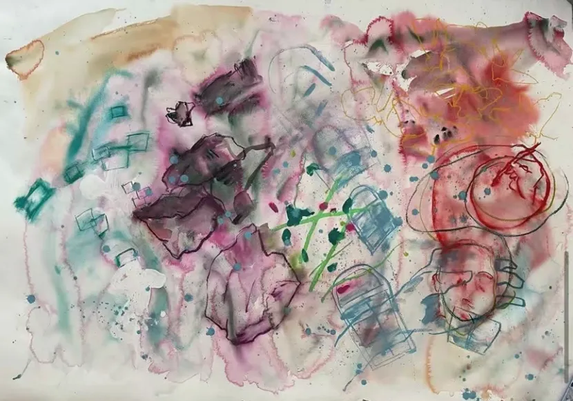 汤颖颖 此刻,此前 2022 纸本综合材料(水彩,粉彩,铅笔) 100x140cm