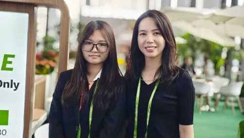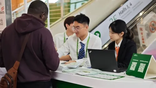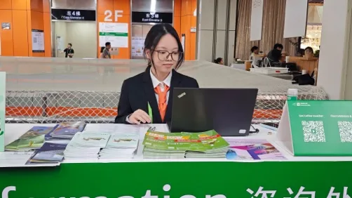 在经历数轮严格面试与系统培训后,商务英语系2023级学生以自信从容、专业干练的形象亮相展会一线,承担导览咨询、客商接待、数据采集、现场协调等岗位任务。学生们凭借扎实的语言功底和良好的服务意识,为海内外客商提供了高效、顺畅的沟通体验。