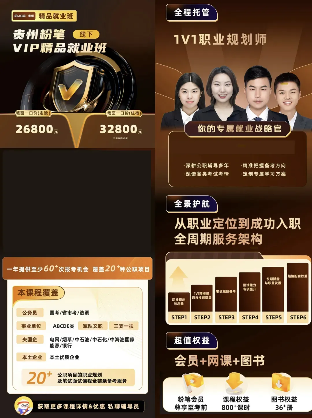 粉笔 VIP 精品就业班基地版・地市版双选上线从职业规划→笔试→面试→入职全周期 1V1 护航校长带队专属规划师一年至少 60 + 报考机会覆盖公职・编制・央国企 …