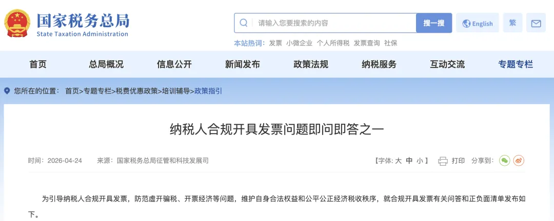 2026 年 4 月 24 日,国家税务总局正式发布了《纳税人合规开具发票正负面清单》,4 个方面共 44 条内容,正面清单 16 条,负面清单 28 条。其中第一条是看开票、受票主体是否合规。