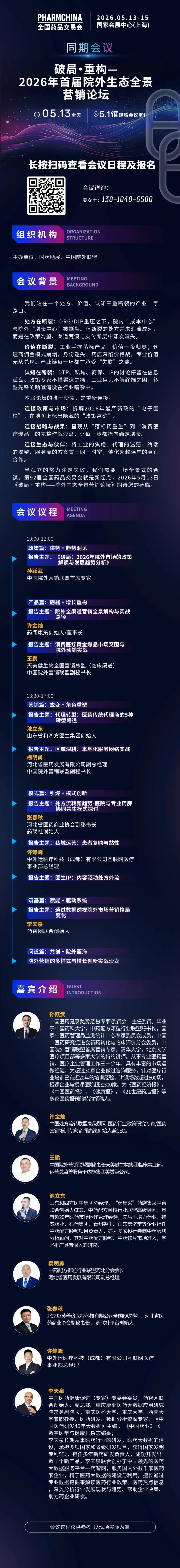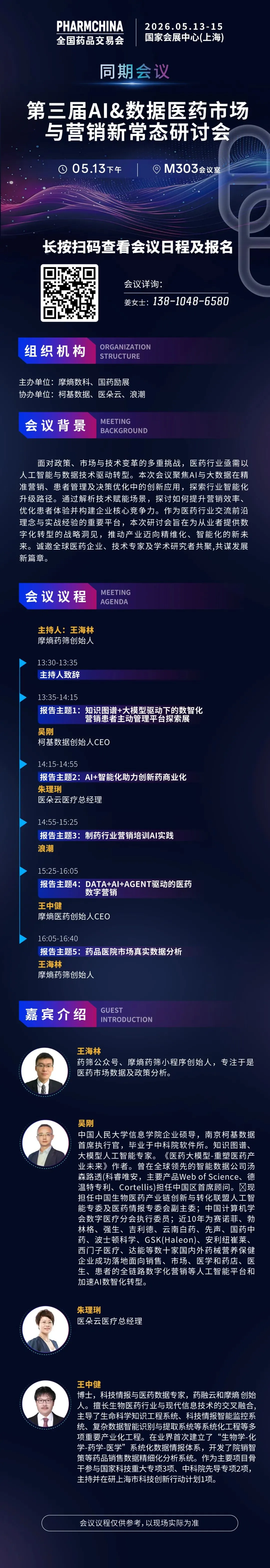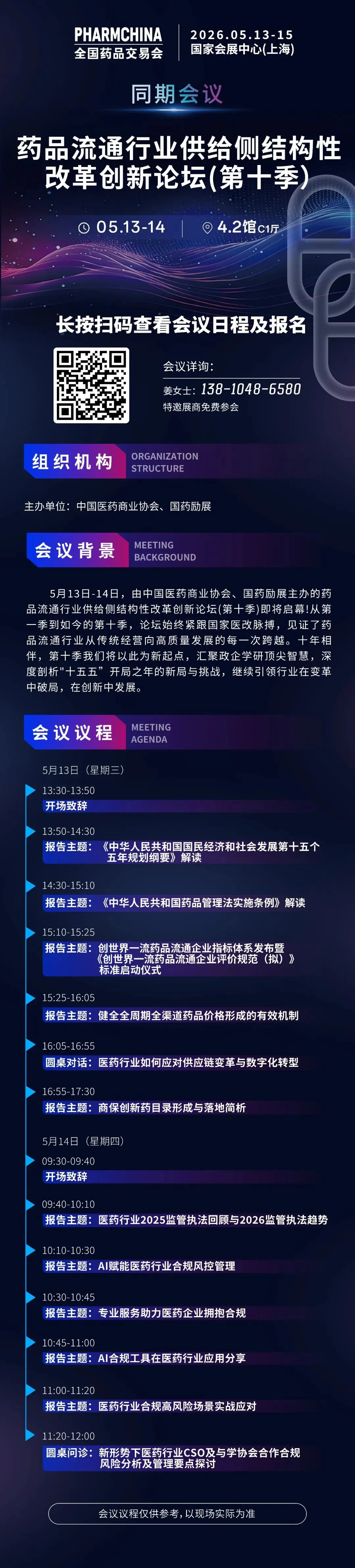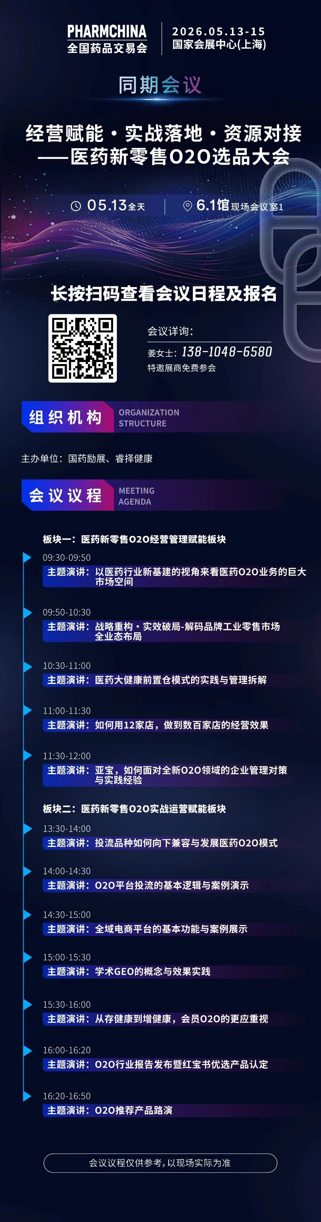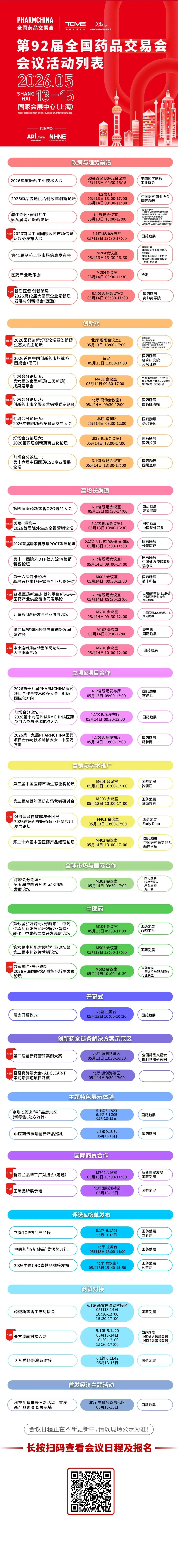 展会期间将与来自海内外医药、健康营养产业近3000家参展企业、预计吸引20万人次的行业专业观众参观。展会同期将举办72场会议论坛,汇集400余位演讲专家,预计吸引1万+参会代表前来参会。盛邀政府领导、行业协会、资深行业专家、品牌企业领袖,从医药健康全产业链的新质生产力、政策研判、市场营销、研发创新、跨界机遇、国际合作等多个领域,深入解读行业趋势、洞见发展机遇、促进交流合作。
