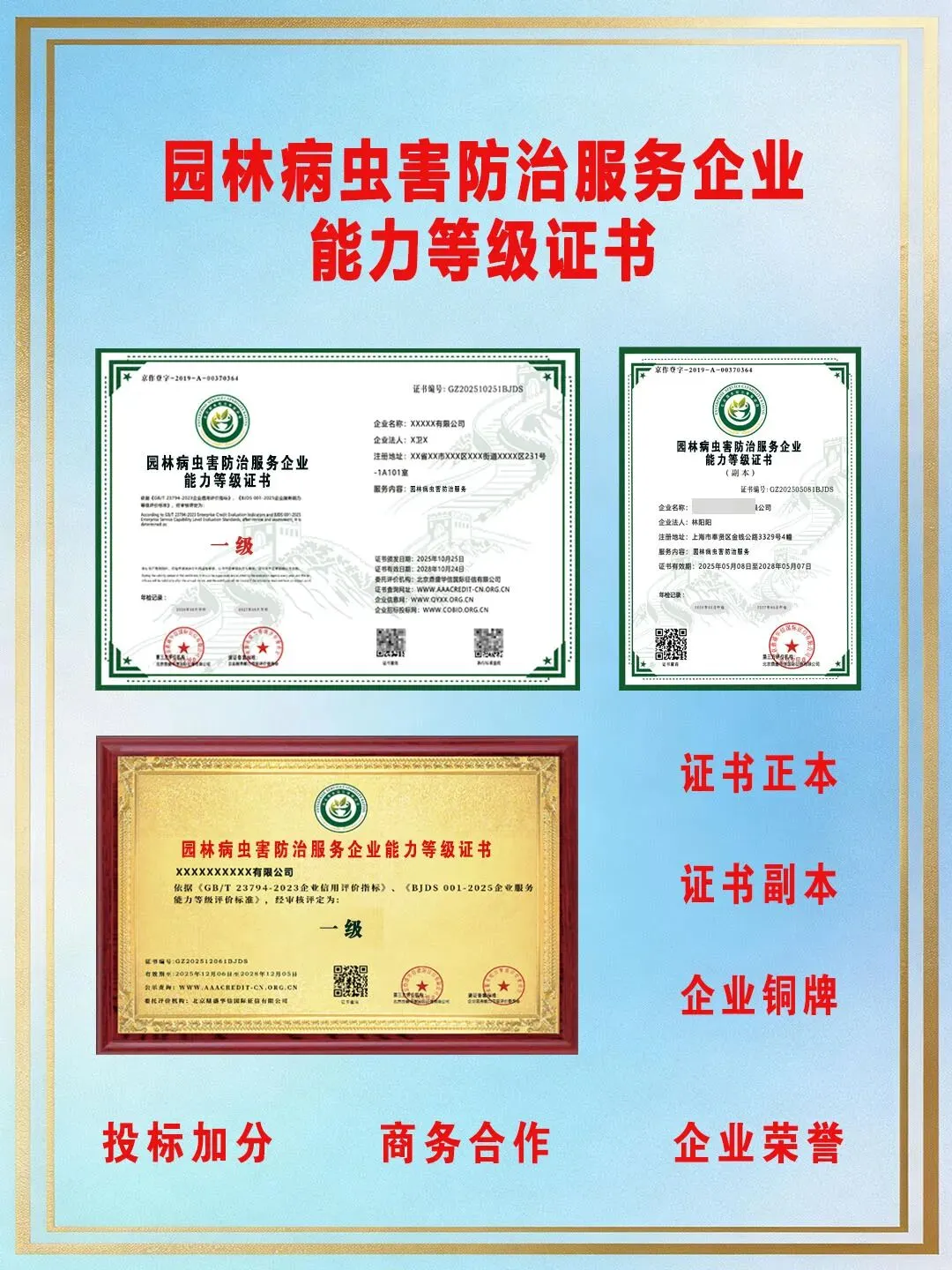企业持有正规资质,可有效降低合规风险,提升项目投标竞争力与甲方信任度,在园林植保细分赛道建立稳定优势,顺应生态环保与长效绿化管护的政策导向。