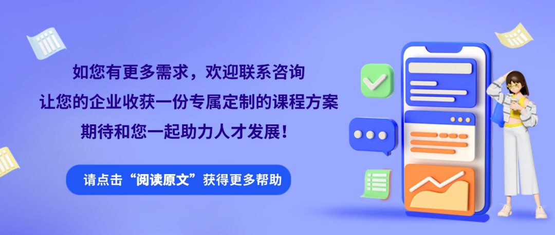 如您有更多需求,欢迎联系咨询,让您的企业收获一份专属定制的课程方案,期待和您一起携手共赢!