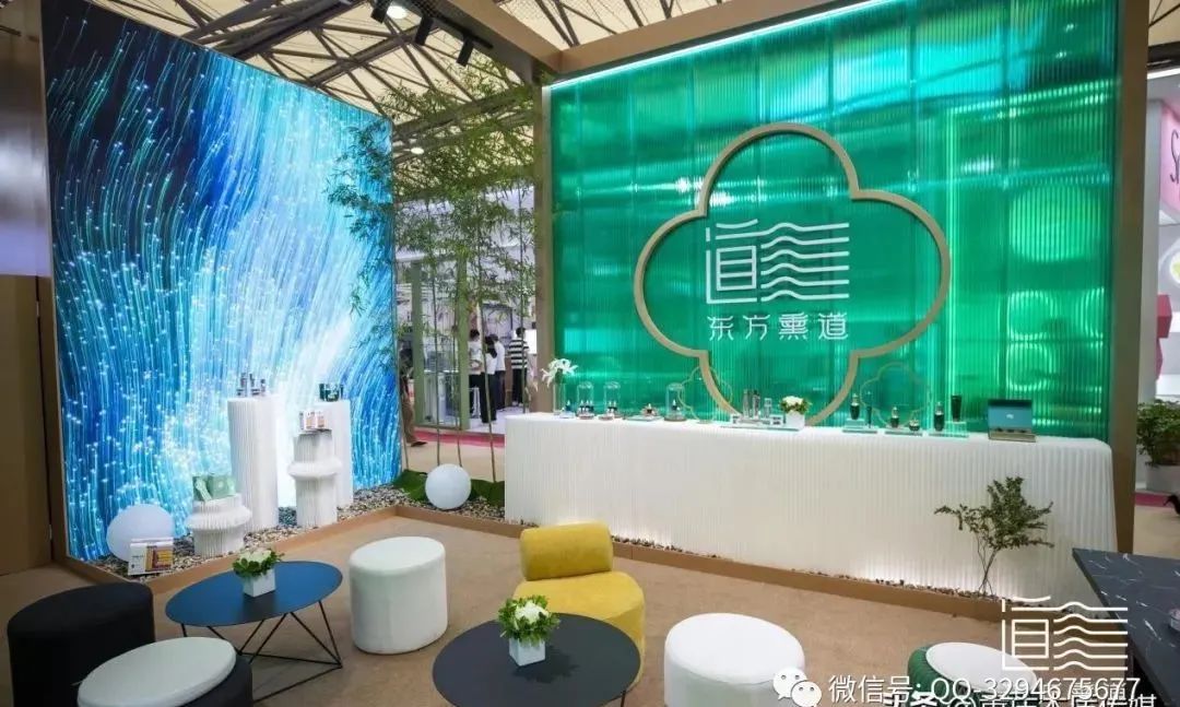 在美陈方面,公司倾力打造东方熏道文化,将飘渺东方韵味与东方意境融入展区设计,色彩延续“东方熏道”的品牌基础用色靓青。强化“东方薰道传承者”的品牌使命,运用中药草本的原始天然肌理材质及动态灯光和飘逸曲线设计营造空间与空间,人与人,人与物的精神交流氛围,增强参观者的识别性、参与度和融入感。带来全新升级的店铺服务体验,展现东方熏道的独特魅力。