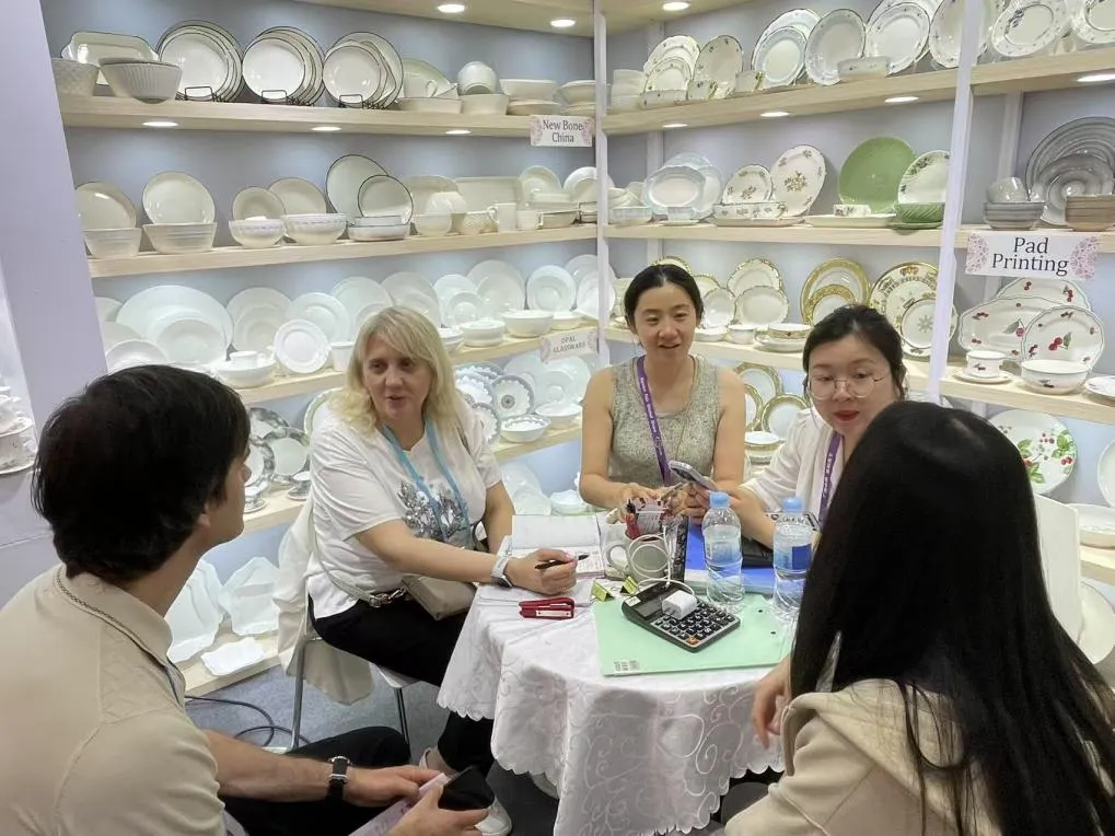 在日用陶瓷及卫浴展区,轻工国际展出的陶瓷产品,紧密结合欧美及中东市场的流行趋势,采用哑光釉面与手工描金工艺,既蕴含中国设计的独特巧思,又精准契合海外高端家居品牌的审美偏好。不少采购商在询价时特别关注“是否可以根据本国市场调整配色与包装”,面对这一高频问题,业务团队当即展示了此前为不同客户量身定制个性化产品的成功案例。从图案修改到包装设计,从色彩搭配到文化元素融合,扎实的案例库与快速响应能力,赢得了客商们的一致认可。这不仅是一次产品的展示,更是一次中国制造从“代工”走向“设计赋能”的实力证明。