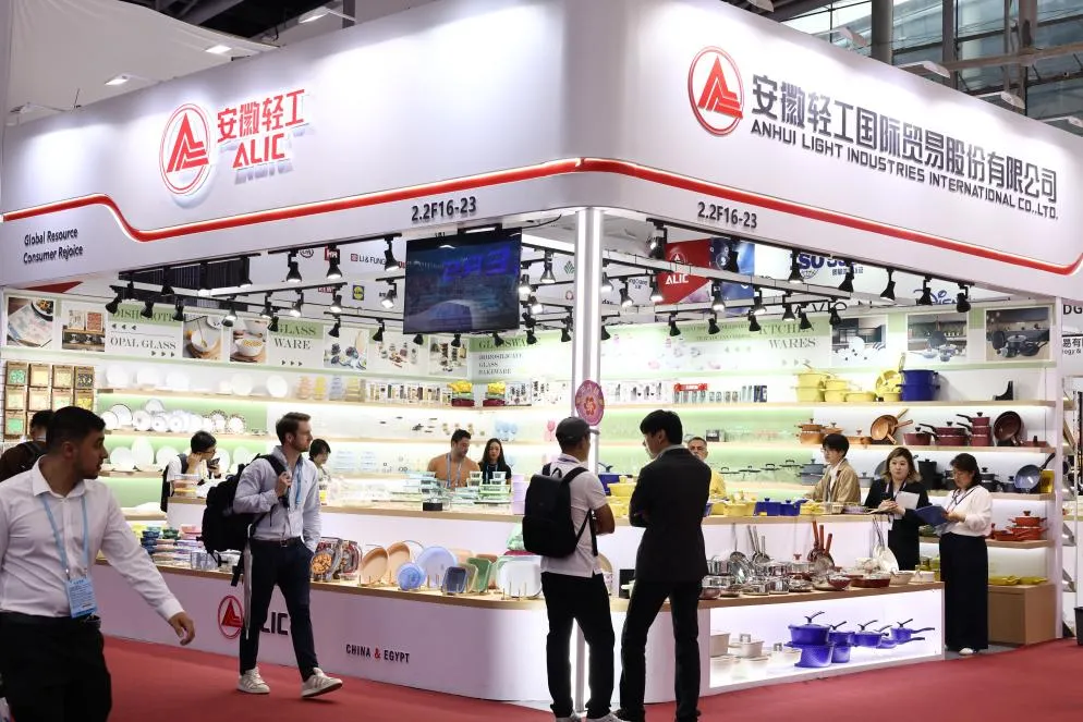 4月23日,第139届中国进出口商品交易会(广交会)二期在广州琶洲国际会展中心盛大启幕。作为安徽省外贸领域的重要力量,安徽国贸下属子公司——安徽轻工国际贸易股份有限公司(以下简称“轻工国际”)再度强势出击,携32个精装展位亮相餐厨用品、家居装饰、节日礼品、玻璃制品、日用陶瓷及卫浴等核心展区。整齐划一的门楣设计,通透开放的展位布局、琳琅满目的产品陈列,将专业性与活力感完美融合,成为展会现场一道引人注目的风景线。