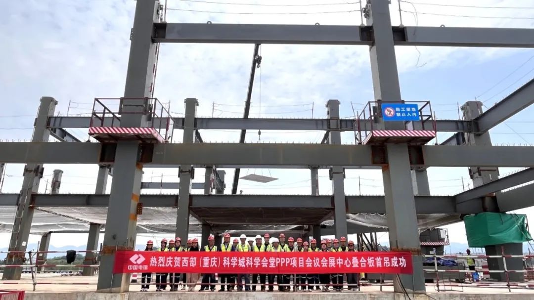 5月12日,重庆科学会堂项目会议会展中心首批预制叠合板顺利吊装成功。