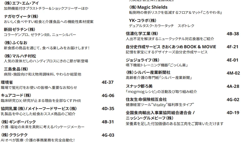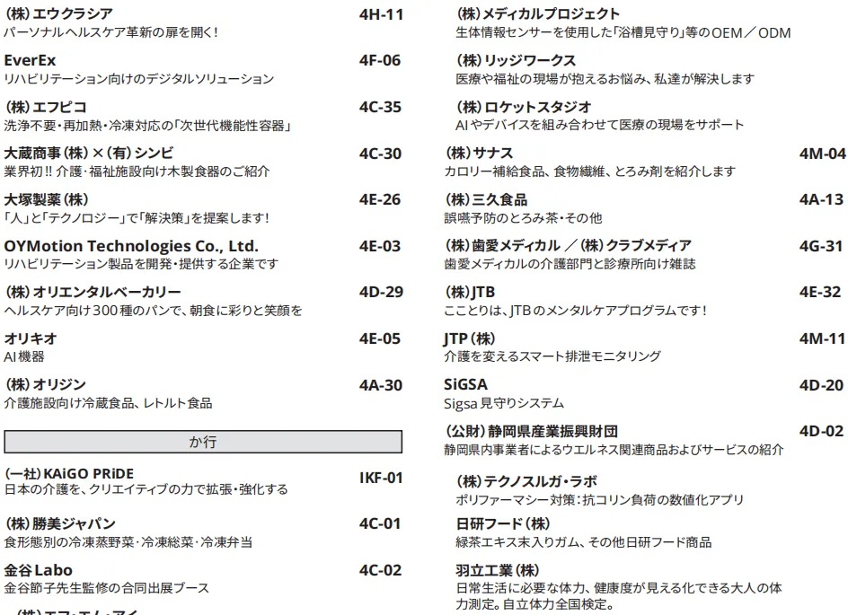 出展社一览G|日本健康介護医療展会Care Show Japan2027医疗食品展.介護高齢展.病院保険展.保健IT展