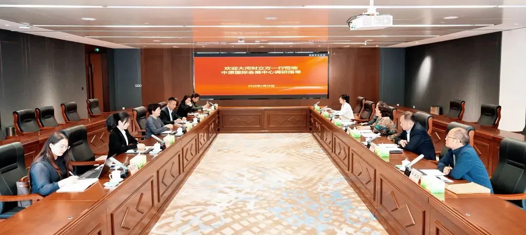 2026年4月28日,大河财立方总编辑王鲁峰带队莅临中原国际会展中心实地调研并座谈。中原国际会展中心总经理冉艺娟全程陪同,中原医学科学城相关负责人参与交流。