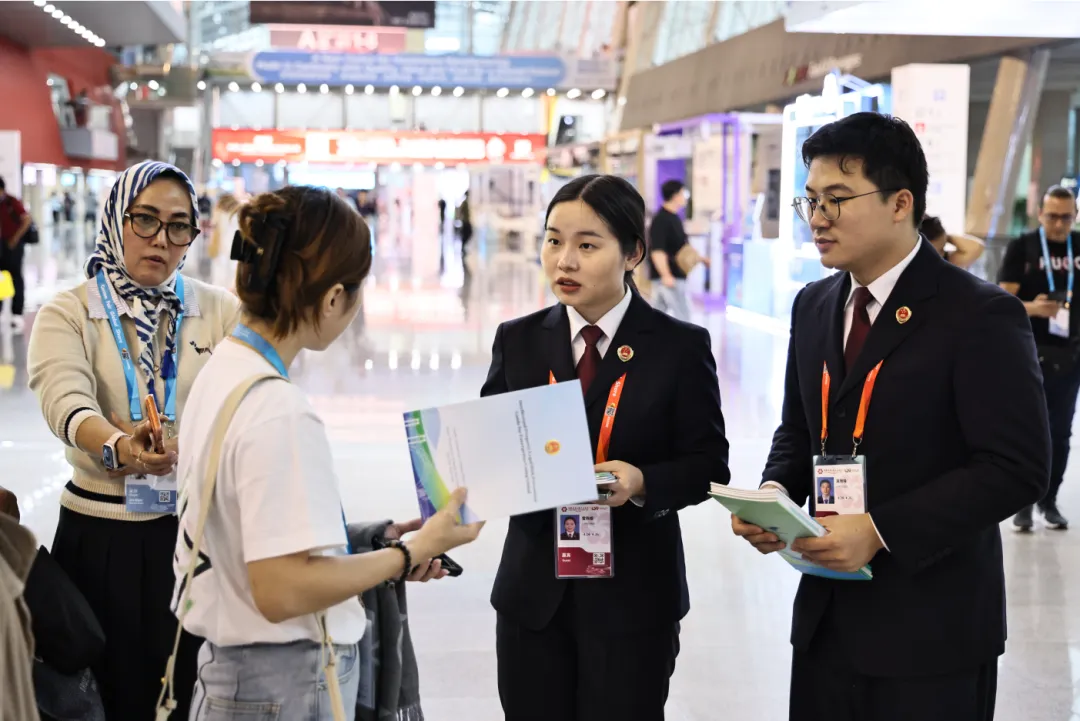 万商云集,客满羊城。近日,第139届中国进出口商品交易会在广州如期举办。南沙区人民检察院紧扣服务国家高水平对外开放战略部署,深度融入粤港澳大湾区建设发展大局,以刚刚发布的多语种《出海企业知识产权法律风险防控提示》为依托,选派精通外语的检察干警,组建涉外法律服务团队进驻广交会,将这份全新的涉外法治产品送达商贸前沿,靠前开展知识产权普法、涉外法律咨询等法律服务,以坚实法治保障为大湾区对外开放赋能添彩。