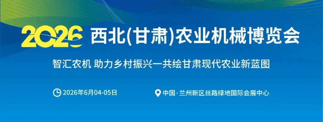 "2026西北(甘肃)农业机械博览会"将于2026年6月4-5日在甘肃兰州丝路绿地国际会展中心举行,以"智汇农机,助力乡村振兴——共绘甘肃现代农业新蓝图"为主题,同期举办"全国智慧农业农机展及中国丘陵农机博览会"。