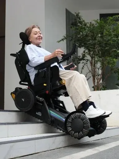 而XSTO小神童则更关注非平地出行方案。小神童深耕爬楼机器人多年,还是国家爬楼产品标准的起草单位。XSTO的核心优势在于“全球独有的全地形机器人底盘技术”,其打造的M4 具身轮椅机器人,搭载了轮式四足+履带的复合结构,配合16套自研伺服系统、8关节动态底盘,平路时用轮式实现高效行驶,遇到楼梯时自动切换履带爬楼模式。