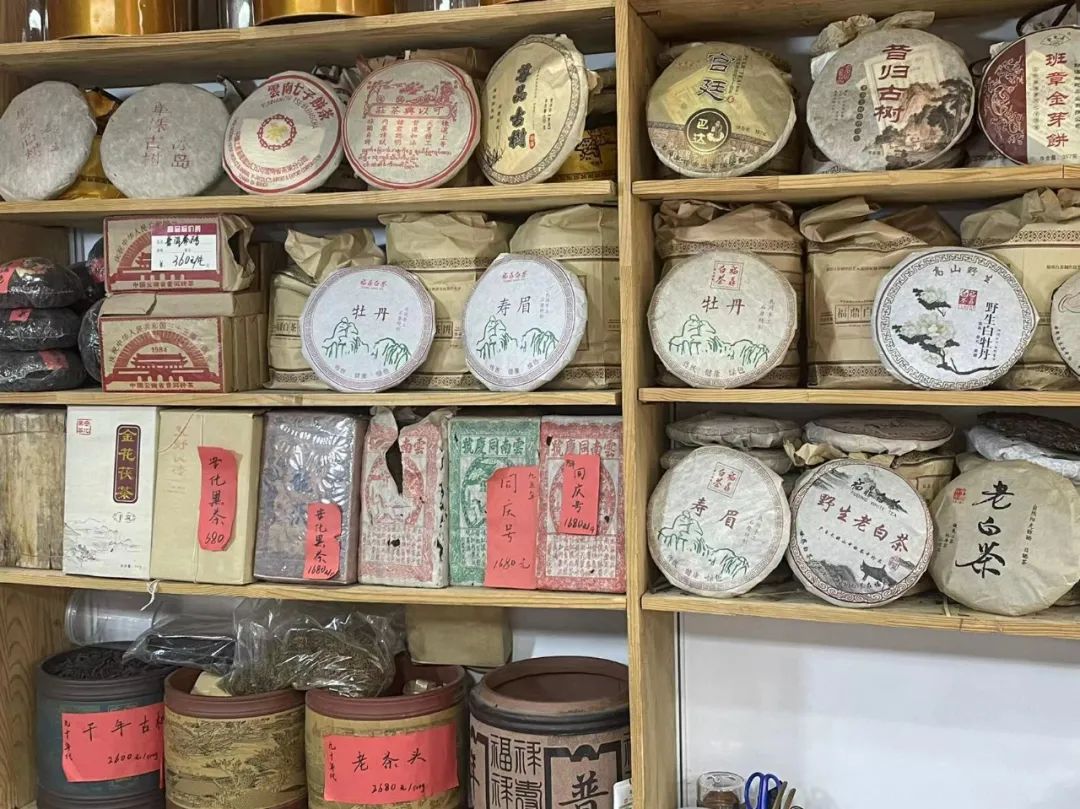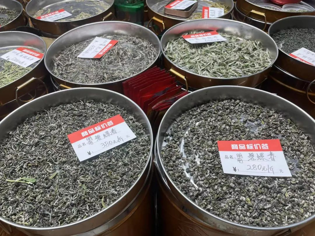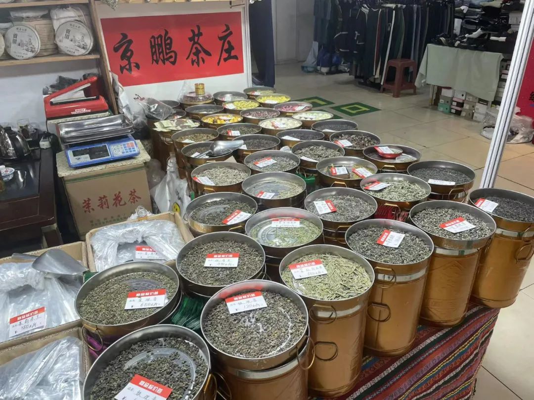 这个茶叶摊,看起来种类不少;罐子上摆着一些样品和价格;不管是逢年过节招待亲朋,还是平时家里自用,这茶叶绝对是每家每户不可或缺的。