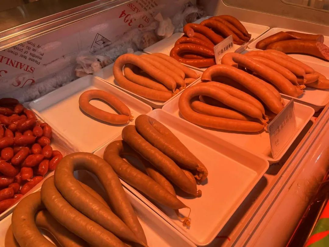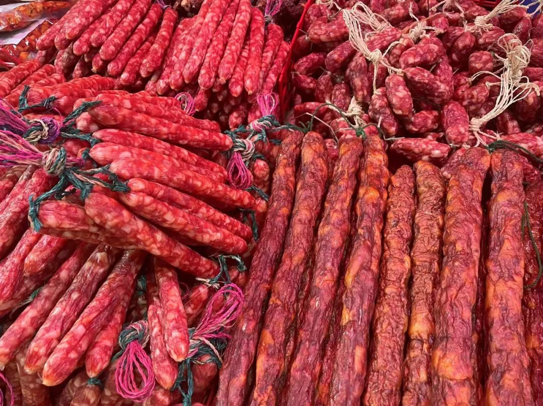 香肠、排骨肠、蒜肠,看看爱吃啥可以每样都来点;还有腊肉、风干肠、熏肉和各地来的地方特产菜,喜欢也可以品尝品尝。