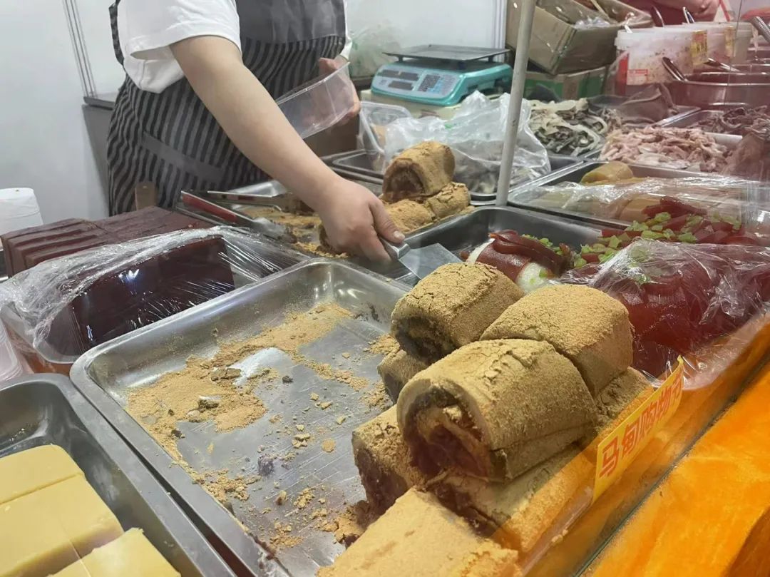 这里好多熟食摊位都有试吃,卖真空包装的鸡鸭鹅、猪蹄、牛肉啥的;赶上摊主做活动,还能多送一袋两袋的。