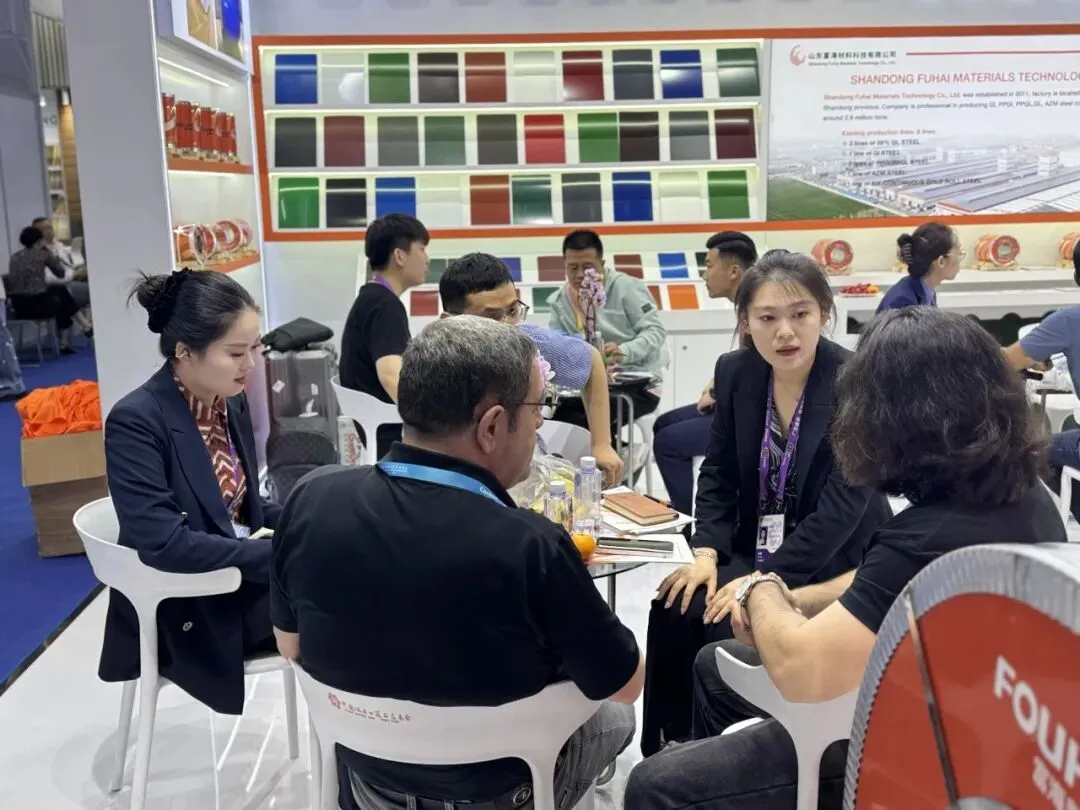 从匠心打磨的高端涂镀板材产品,到自主研发的核心技术成果;从绿色低碳的生产理念,到全球化的品牌布局,富海新材以 “产品 + 技术 + 品牌” 的三维展示模式,构建沉浸式体验空间,让海内外客商直观感受企业从研发、生产到服务的全链条综合实力。