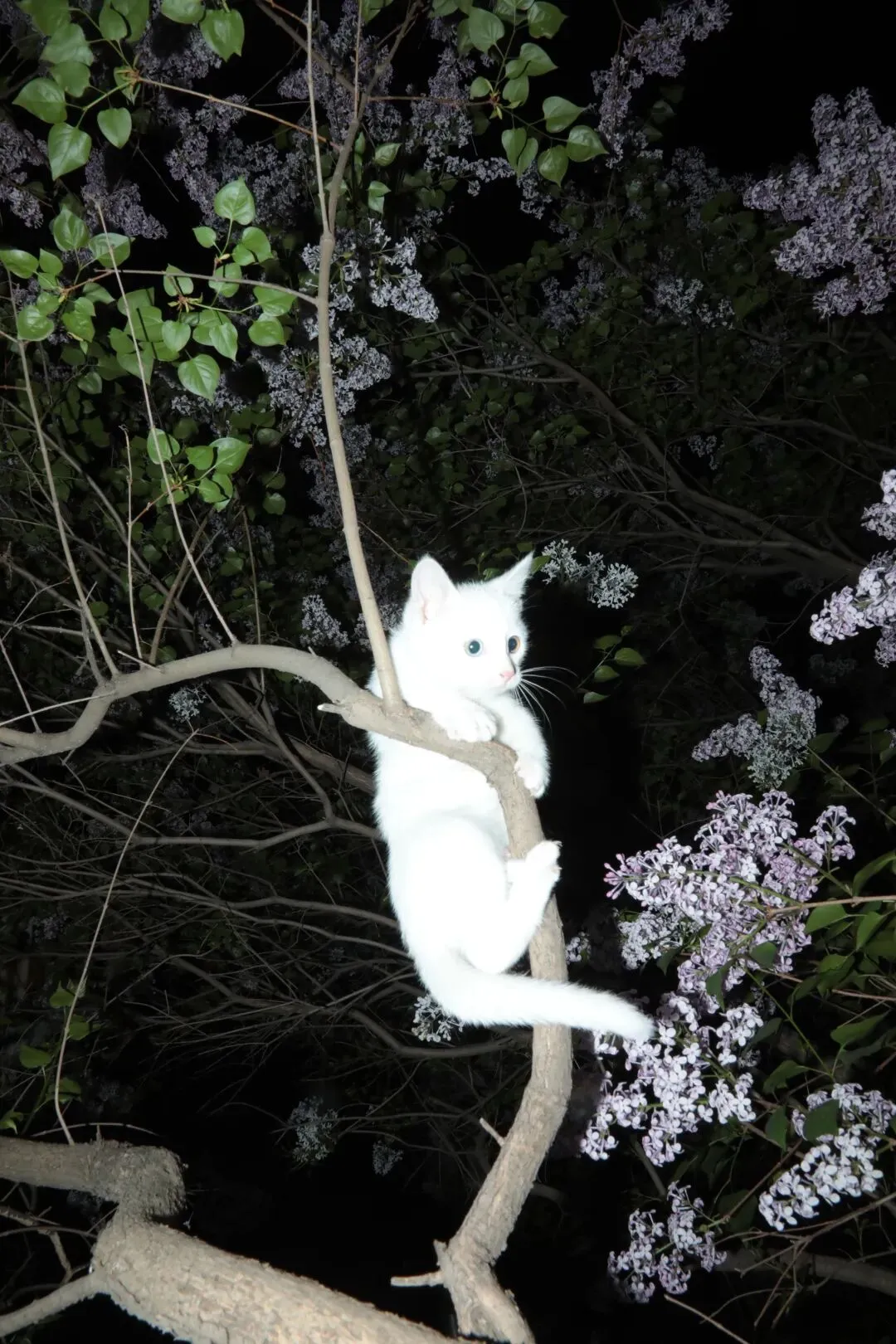 我把这张照片叫做“春夜月神游”。我的小猫名叫珍珠,当时她才两三个月大。那晚是她第一次出去看外面的世界,第一次爬树,像个对未知世界充满好奇的小精灵。