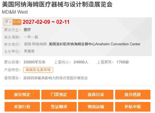 [展位预定、门票预定、展商目录、展台搭建、差旅行程、签证、翻译、物流运输、补贴申报]