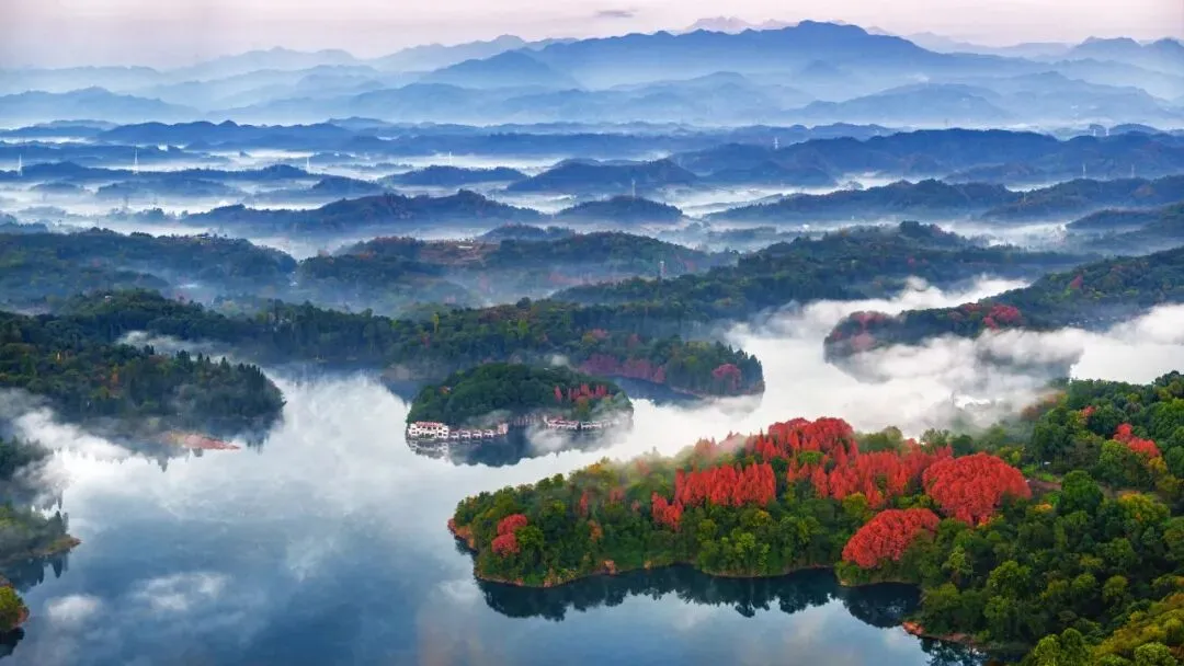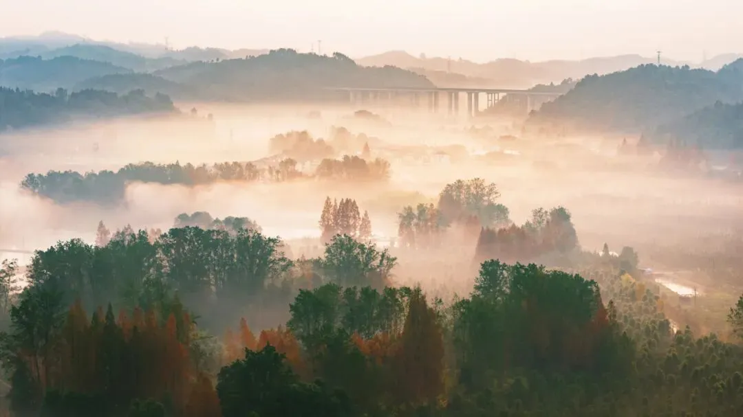 到文井江镇层林尽染的壮丽风光