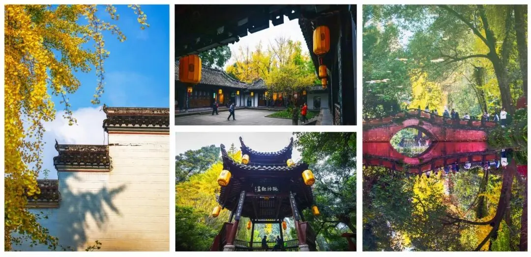 从罨画池银杏与红墙黛瓦的古典之景