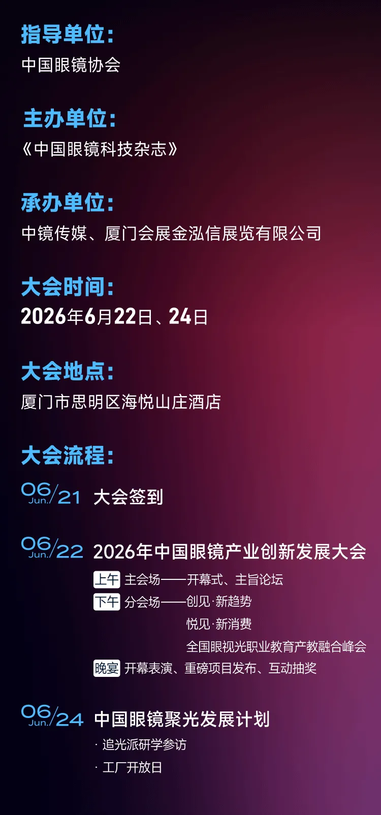 当夏亮点 | 2026中国眼镜产业创新发展大会将在6月厦门眼镜展期间隆重举办!