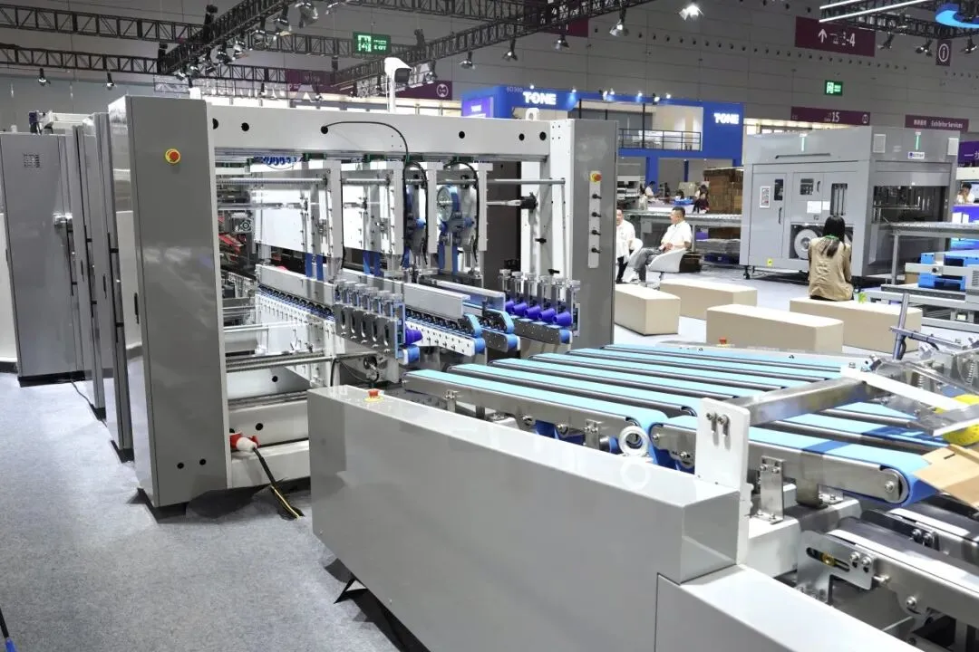 本次展会,德钢技术以「全伺服智造,赋能高效生产」为核心,带来了TECHNOCUT-1650S 全自动平压平模切排废机联线物流自动运输、T-FOLD PRO S1650 全自动双片钉糊一体机、MEGAPRO-2800单片钉糊一体机+自动机械手码垛物流线三大核心产品。