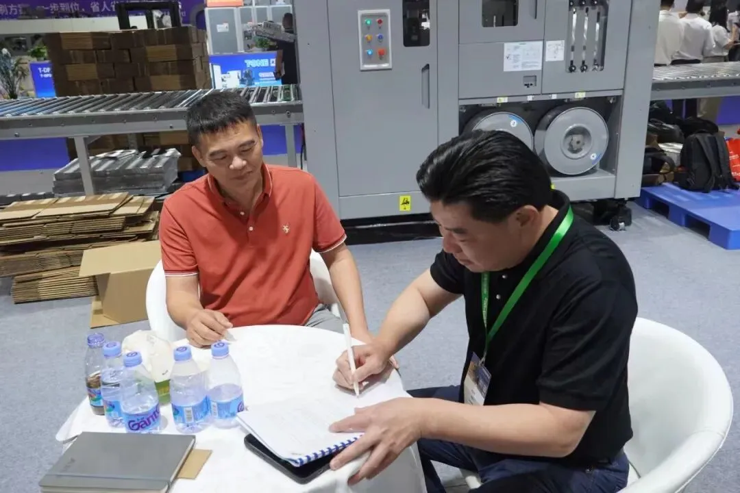 双片钉糊一体机以科学结构设计,做到运行稳定、精度出众、快速换单,凭借卓越性能获客户高度认可,现场斩获20台订单!
