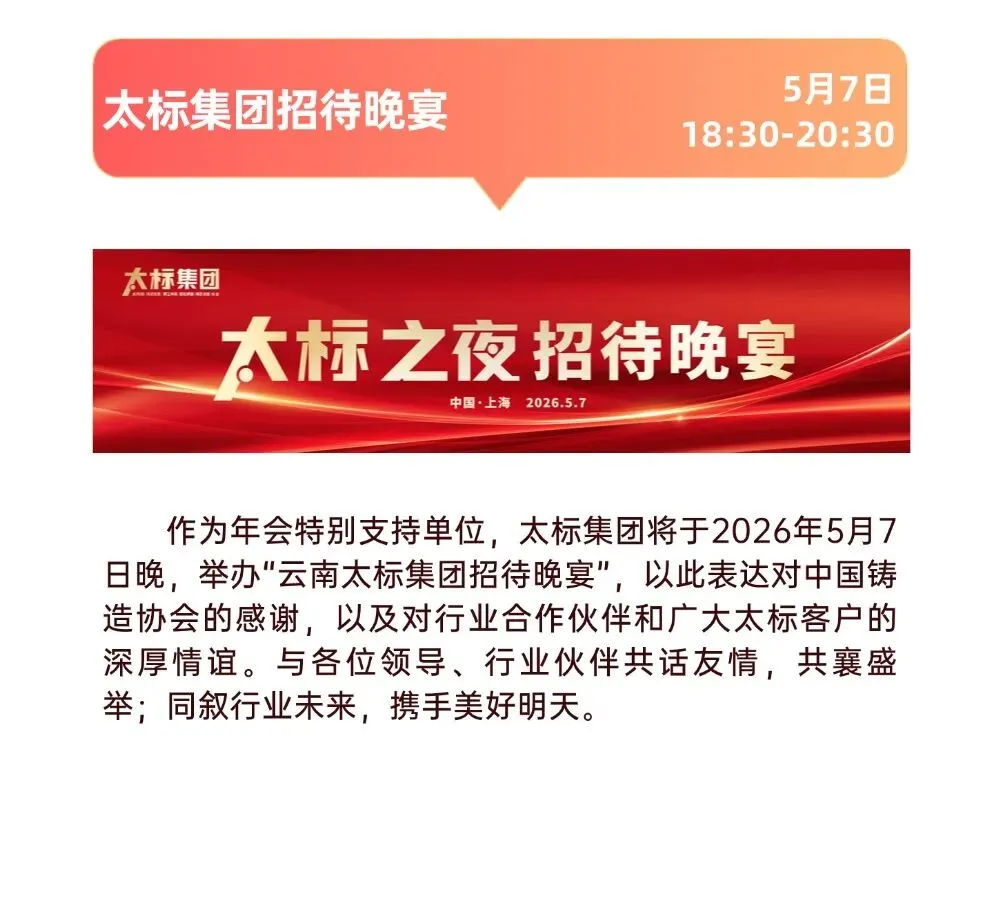 年会&展会预告 | 太标集团诚邀您莅临第二十二届中国铸造协会年会、第二十四届中国国际铸造博览会