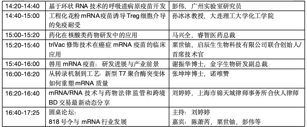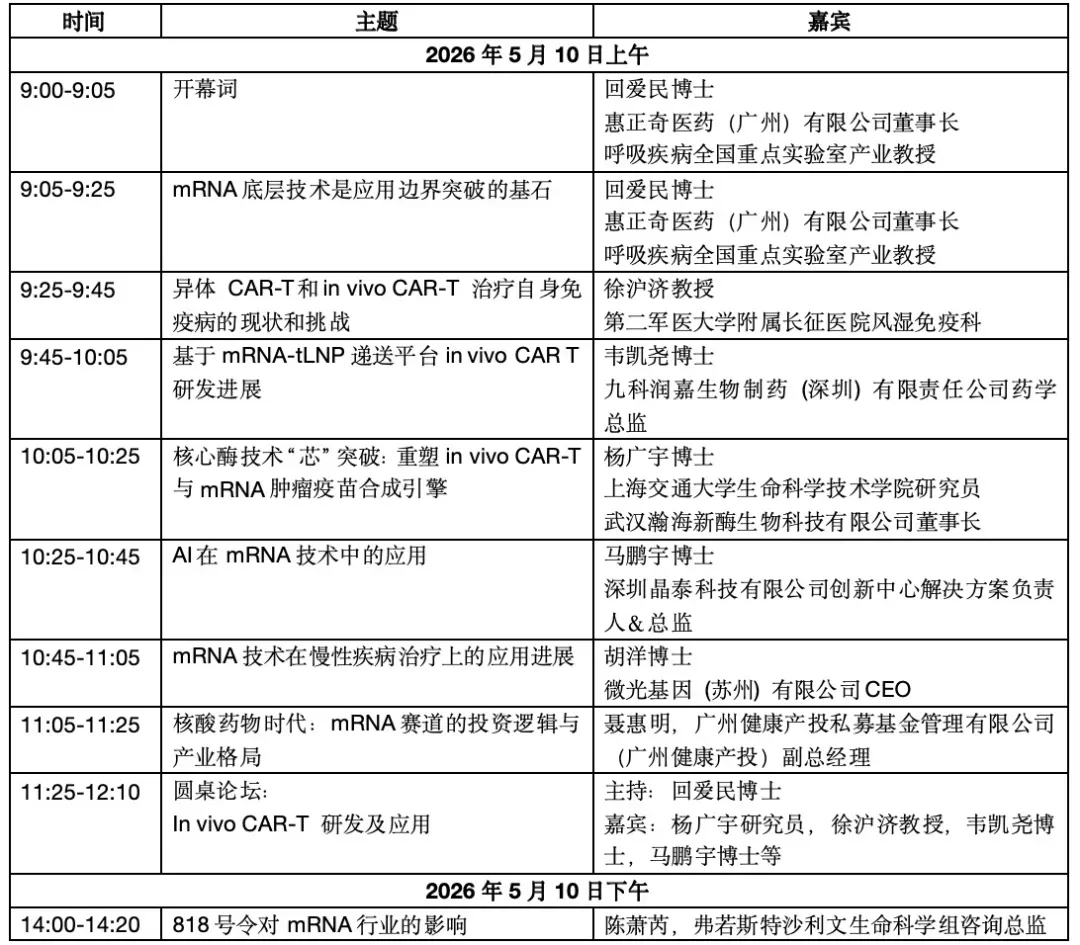 免费报名:请有意参加mRNA 技术论坛者于2026年5月5日前,通过以下联系方式与论坛会务组确认参会信息,以便我们统筹安排。