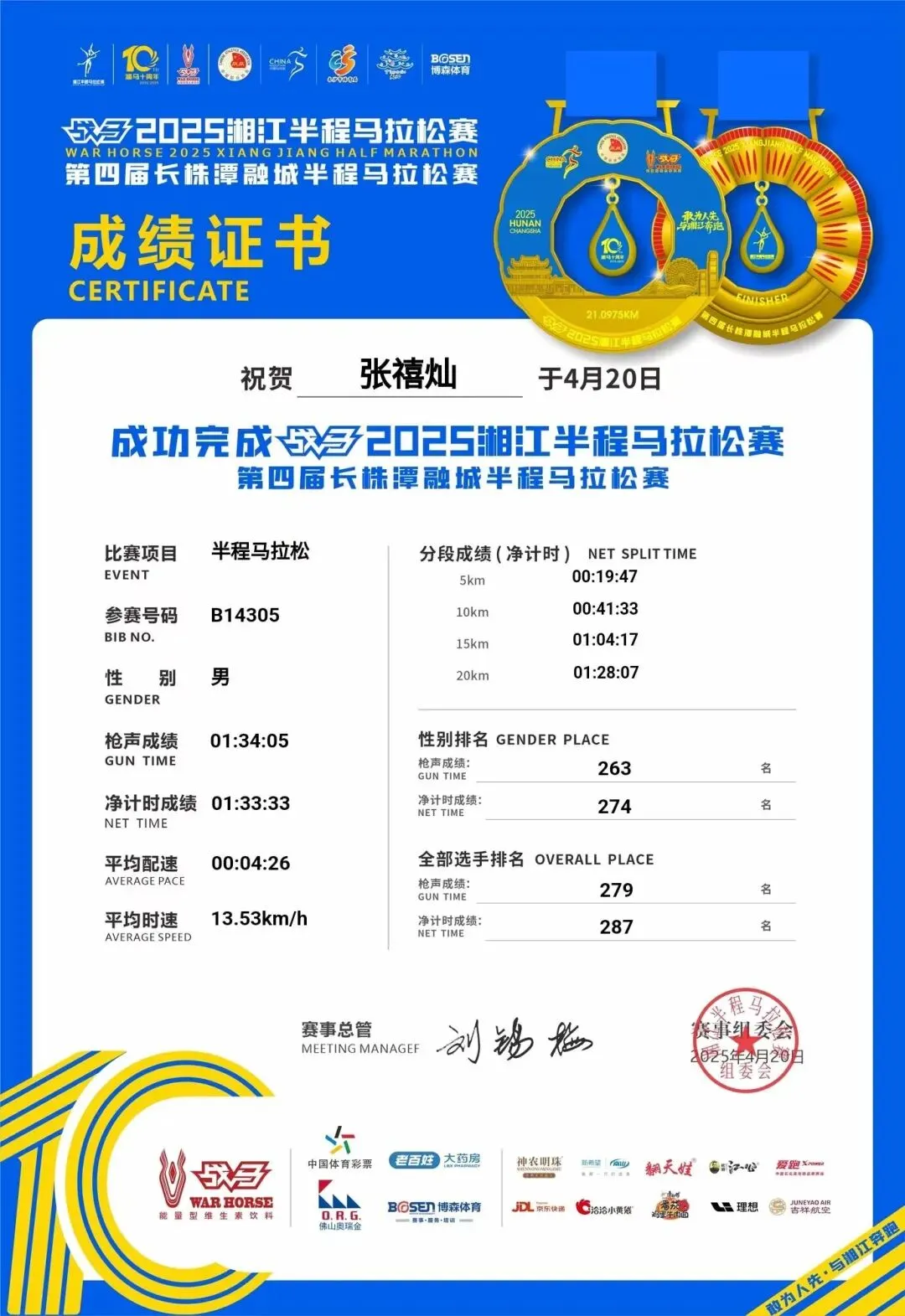 本土作战的优势,就是可以找寻队友,一起出发,根据比赛当天的天气,降低了比赛预期希望,力争突破85分钟,因为自己目前还没有在中国田协认证的半程马拉松达标精英选手,来到赛场,早早热身,湖南热跑团的兄弟姐妹们基本上都是A区出发,我们一起聊天,缓解的赛前焦虑。同行的朱总说,株洲马拉松一姐需要他带跑一下,然后就一起开始跑步,我们的目标配速355-400匀速完赛。当天的温度应该是25度左右,除开猴子石大桥到湘府大桥北往南段没有大树遮挡,其它区域都有树荫,今年最大的改进点,就是加油助力的人特别多,赛道有利于跑成绩。如果湘马能改到三月中旬,可能是个完美赛事。