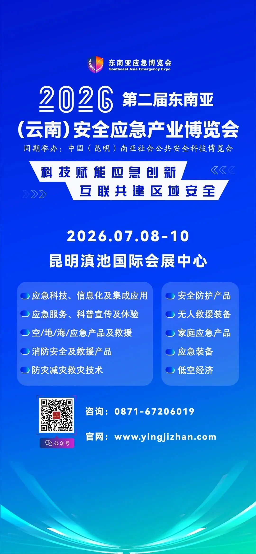 2026年7月8日至10日,第二届东南亚(云南)安全应急产业博览会(以下简称“应博会”)将在昆明滇池国际会展中心如期举办。本次应博会由昆明市应急救援协会主办。目前,展会招商招展工作已全面启动,我们诚邀全国安全应急领域优质企业齐聚春城,携手深耕云南市场,共寻发展新机遇。
