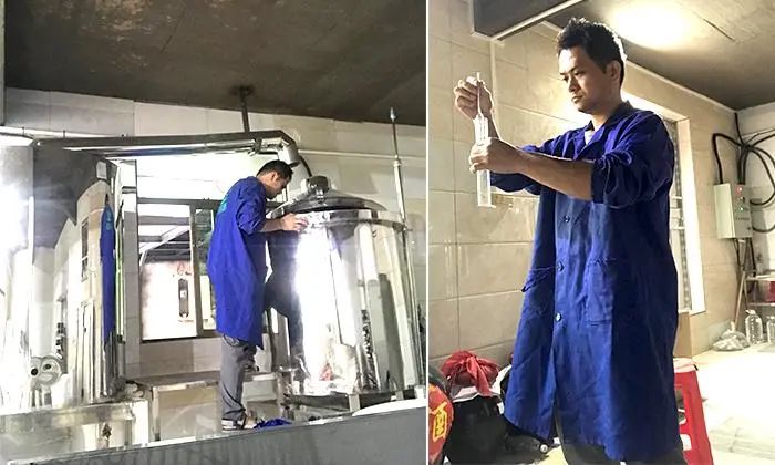 曾志坚根据自己积累的数据,不断改进酿酒工艺,酒的口感也越来越好,现在,他的每一批大米酒都用传统陶缸发酵,且至少要发酵一个月,在用不锈钢白酒酿酒设备蒸酒时,接至30度左右就换缸做尾酒接了。