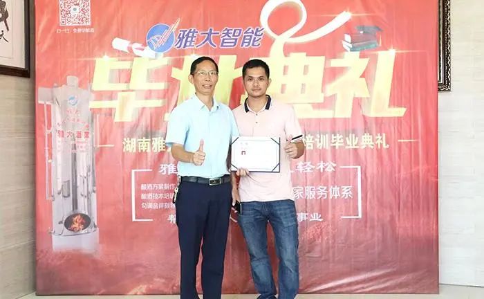经过一段时间的了解后,他对雅大有了一个全面的了解,并于2019年雅大举行全国公益培训会期间来雅大考察,订购了一套200斤雅大白酒酿酒设备,并系统的学习了全套酿酒技术,包括理论学习+酒厂实操课程。