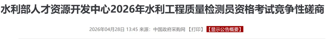 2026年水利工程质量检测员资格考试 采购项目的潜在供应商应在中招联合招标采购平台网络下载或线下获取。获取采购文件,并于2026年05月12日 09点30分(北京时间)前提交响应文件。