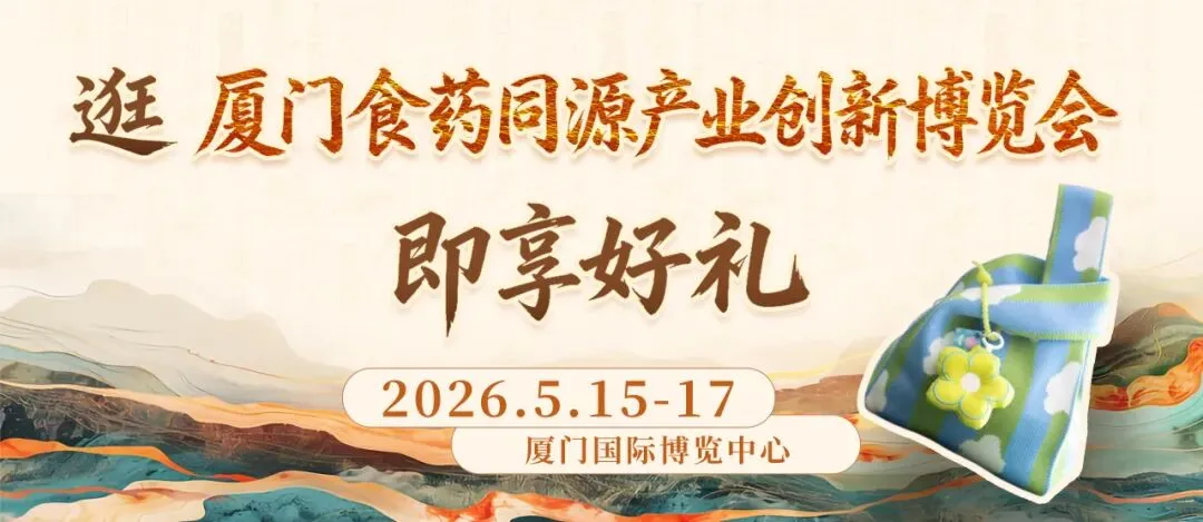 厦门食药同源产业创新博览会将于2026年5月15~17日,在厦门国际博览中心举办,是国内首个聚焦“食药同源”领域的专业盛会。