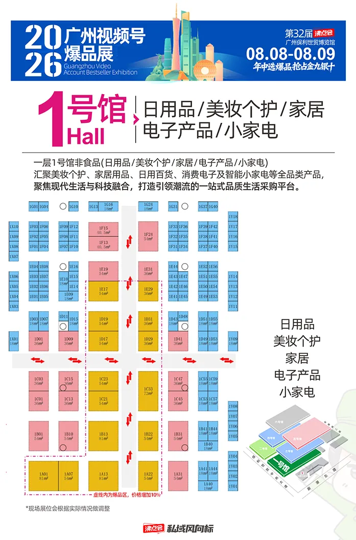 :作为论坛 + 选品专属场馆,承载趋势论坛、百强联合选品会等核心活动,是行业交流与精准对接的核心区域; - 一号馆(一层・非食品区)