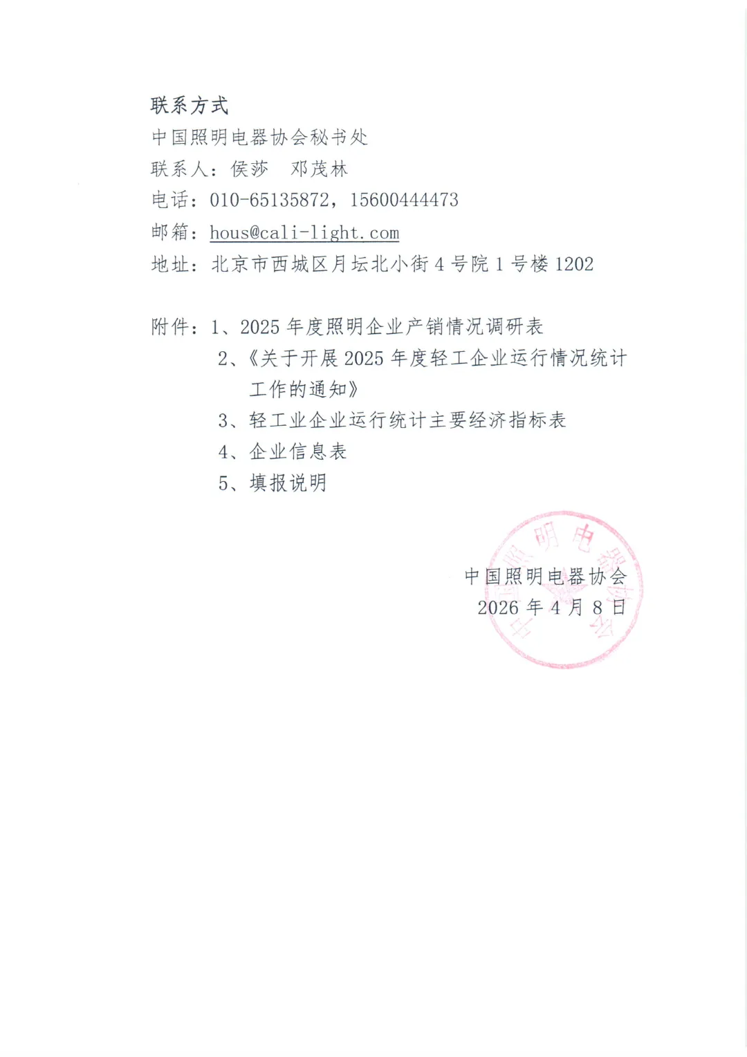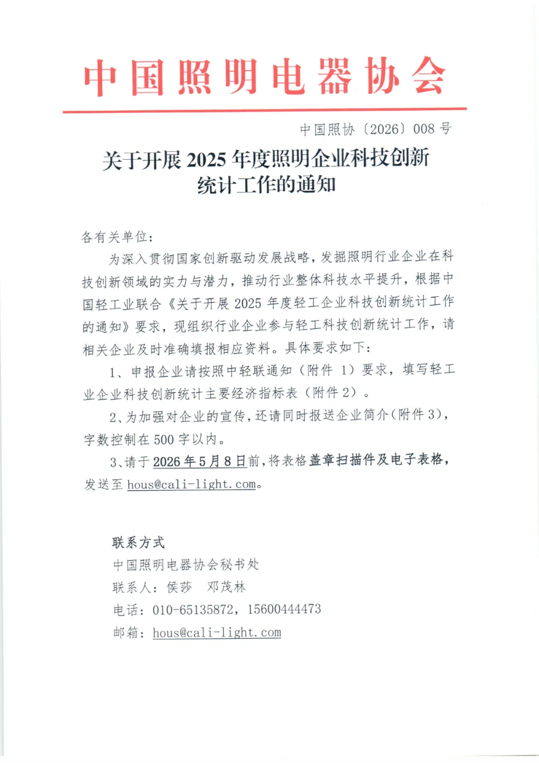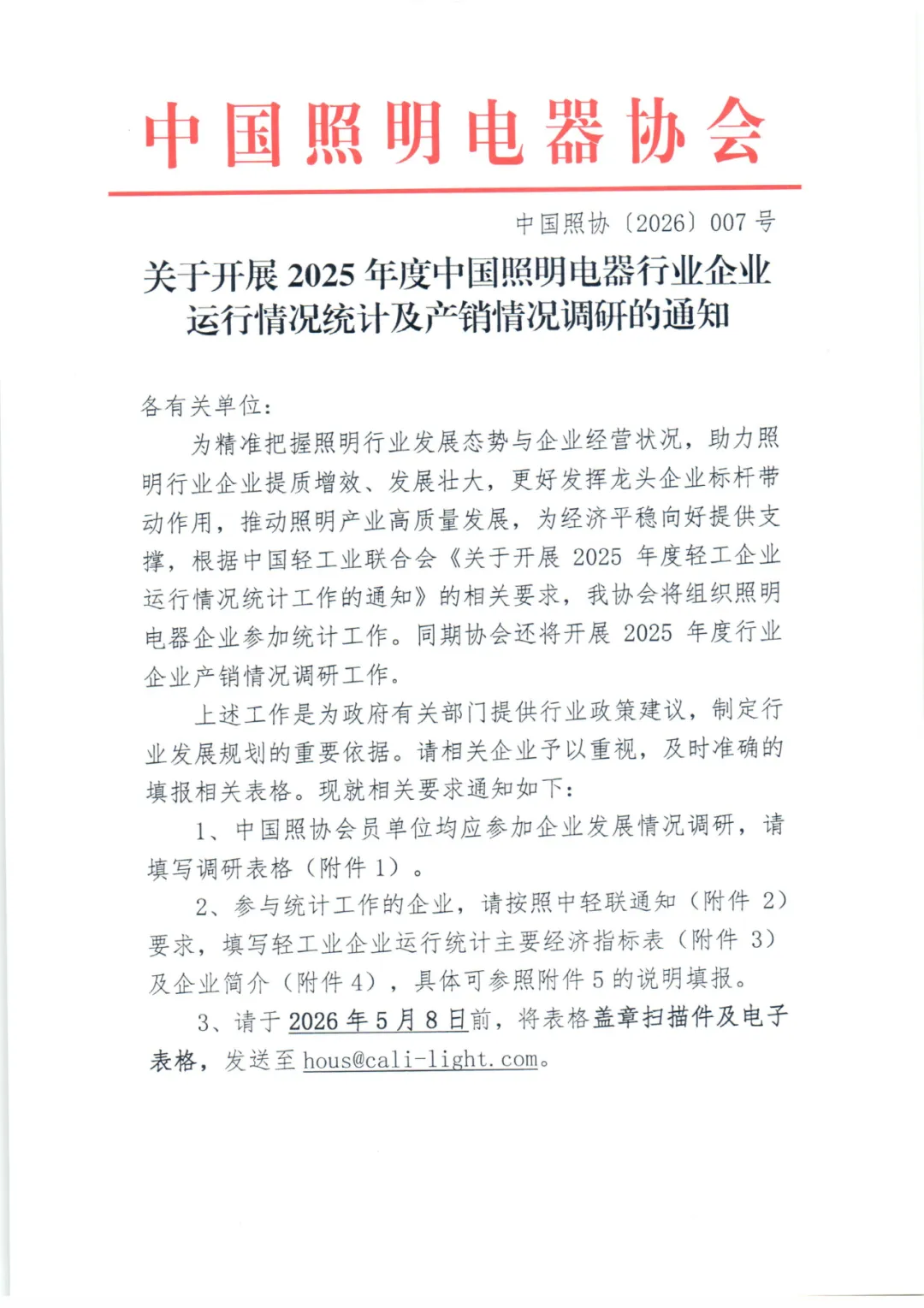 3、请于2026年5月8日前,将表格盖章扫描件及电子表格,发送至hous@cali-light.com。