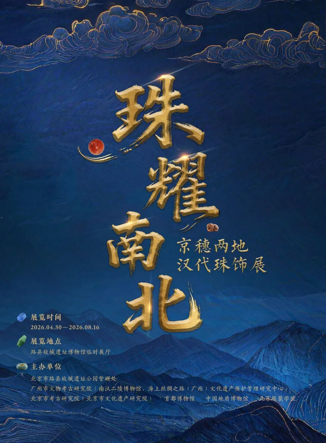本次展览以珠饰为文化信使,系统呈现广州(番禺)与路县故城两地出土的汉代珠饰。广州作为海上丝绸之路枢纽,出土珠饰材质丰富、工艺繁复;路县故城作为北方边邑要冲,出土珠饰风格简约务实。一南一北,千里相望,共同勾勒大汉王朝的礼制风貌与百姓生活图景。