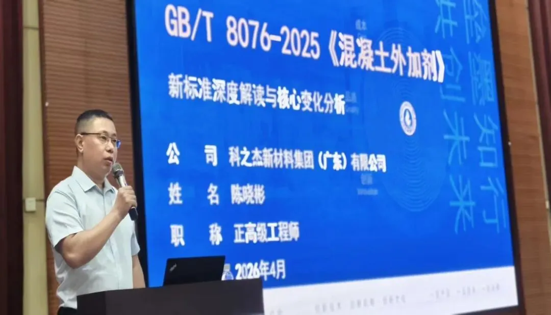 北京工业大学周永祥教授以“低碳混凝土技术创新与应用”为核心,解析水泥低碳技术路径、配合比设计新进展及风电塔筒等特殊场景混凝土设计要点;科之杰新材料集团(广东)有限公司技术总工陈晓彬正高级工程师聚焦国家标准《混凝土外加剂》GB/T 8076-2025,厘清新标准修订背景、核心指标变化及安全技术规范的适用边界,为企业精准适配新标准提供技术指引;广东省预拌混凝土行业协会副秘书长柯倩倩高工通过《广东省预拌混凝土行业能耗调研情况说明》,系统分析全省行业能耗现状、政策要求及节能降碳路径,并现场指导调研表填写规范,为企业提供数据支撑;常务副秘书长林远煌高工围绕团体标准《预拌砂浆绿色生产管理标准》,从编制背景到评价程序进行全流程解读,推动预拌砂浆行业绿色生产标准化落地。