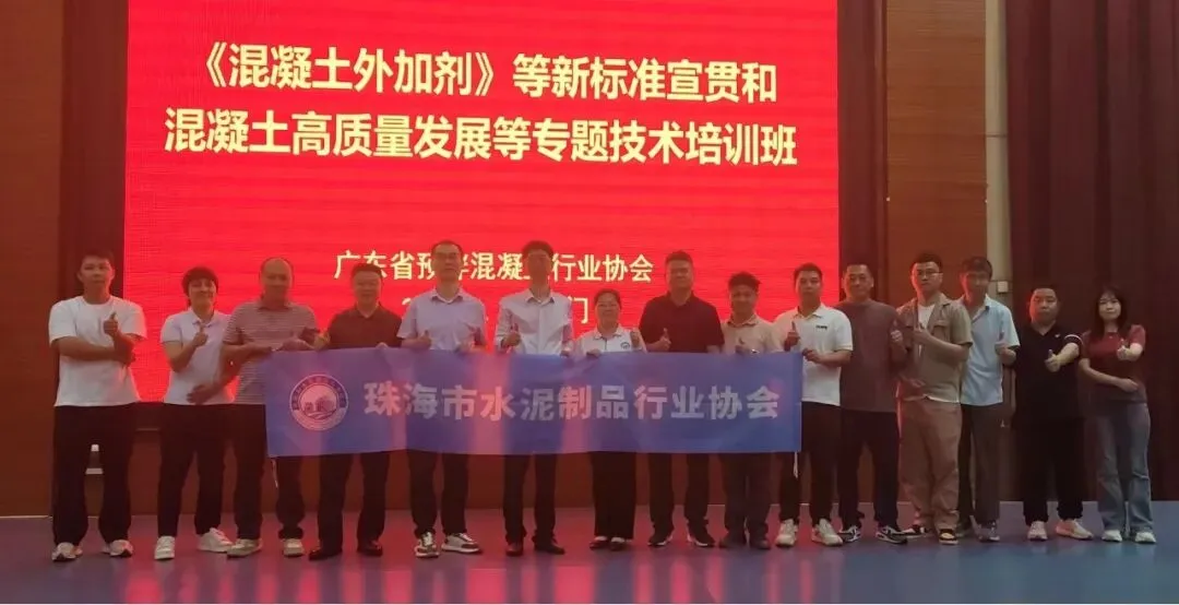 2026年4月16日,由广东省预拌混凝土行业协会主办的《混凝土外加剂》等标准宣贯和混凝土高质量发展专题技术培训班在江门雁山酒店隆重举办。珠海市水泥制品行业协会李红艳部长带队,组织全市35名预拌混凝土企业技术骨干参会。