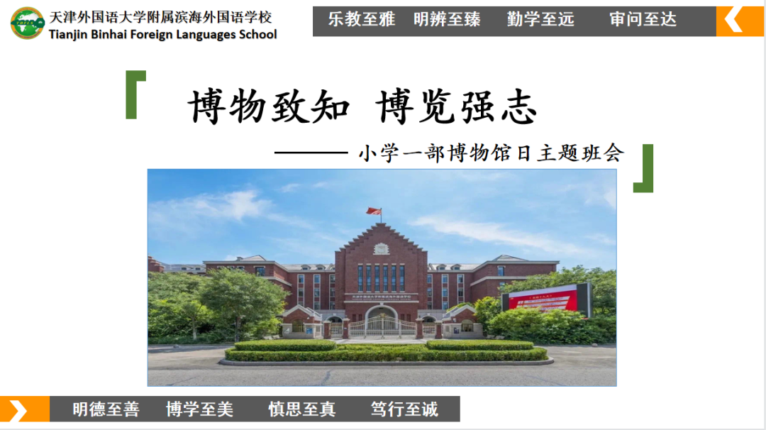 为了让学生感受博物馆多彩的文化魅力,领略历史文化底蕴,在“5·18国际博物馆日”来临之际,生态城天津外大滨海附校小学一部开展了“博物致知,博览强志”博物馆日主题班会活动。