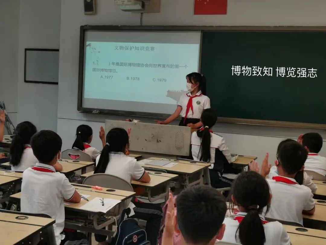 课堂上,在老师的指导下还展开了文物知识竞答活动。在竞答过程中,现场气氛热烈,孩子们兴致高涨,既起到了博物馆科普宣传的作用,又通过这种乐学乐教的活动提高了孩子们对博物馆的兴趣。