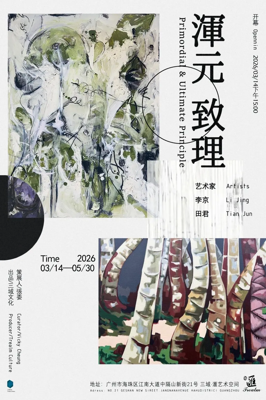 ?核心亮点:李京、田君双个展,以抽象笔触解构艺术本源,在混沌中探寻秩序与哲思。