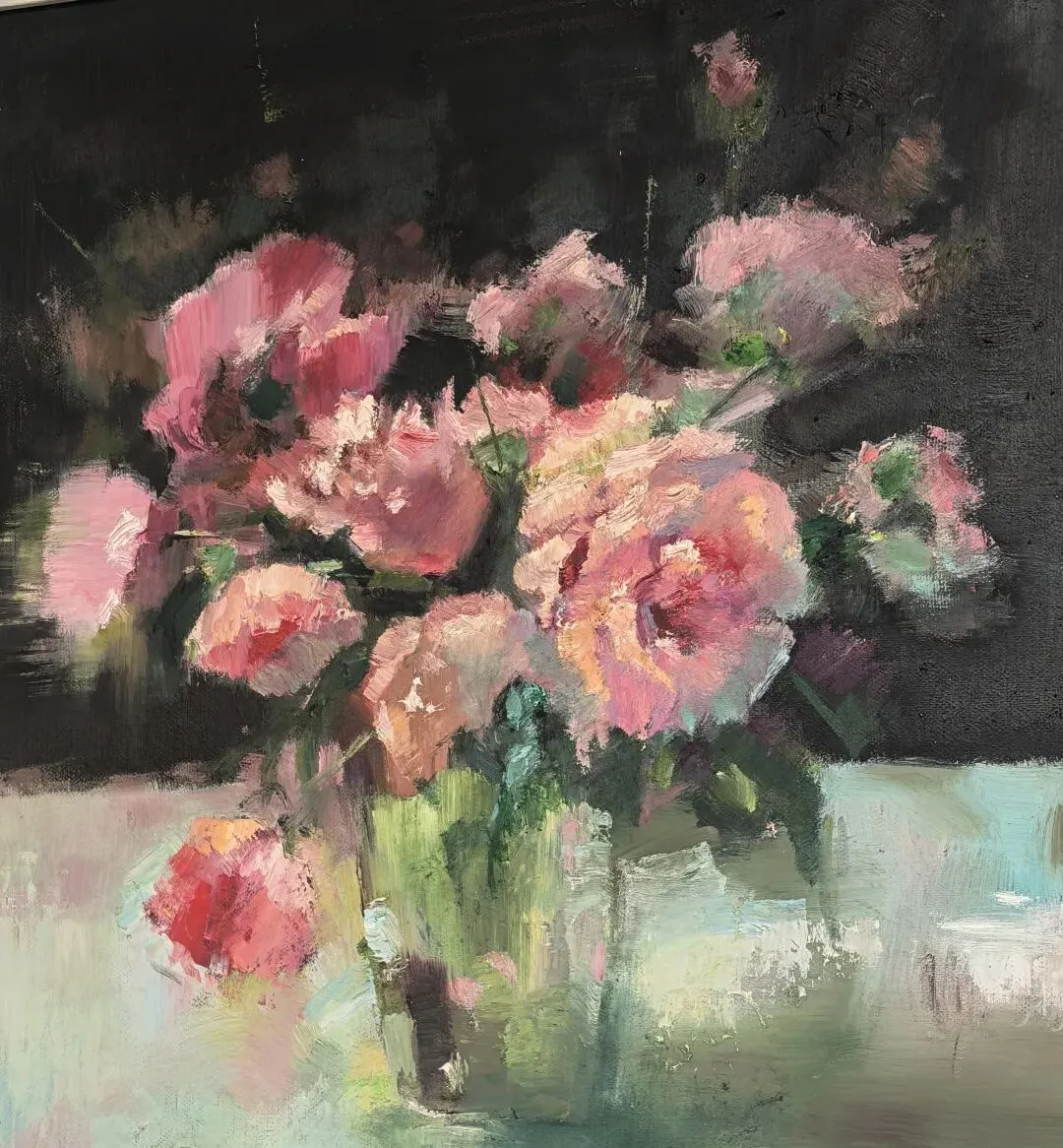 大虞国有一个都是画画人的群,藏龙卧虎,大佬林立,群里总有些展览等信息,我毫无资质就潜水其中从不冒泡,一日无聊翻看群,想起美林女士已经是一方区域美术管事的领导,却竟然还不在群里,感觉奇怪,顺手一拖,把她拉进了群,她的能量便很快渗透进了虞国画界的更大范围,究其原因,也正好是她自己努力画画,虚心听取各路老师与画画同伴的建议,她也积极参与各种继续深造与进修的机会,加上她本来的天赋和职位以及爱好,使得她的画面不断提升向上,同时也为虞国的美术氛围注入了新鲜能源。