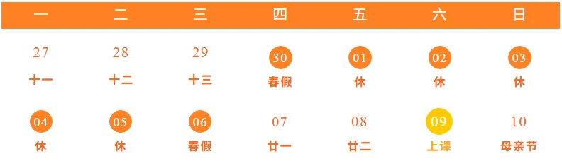 放假时间:春假共放假2天,具体时间为4月30日(星期四)、5月6日(星期三);