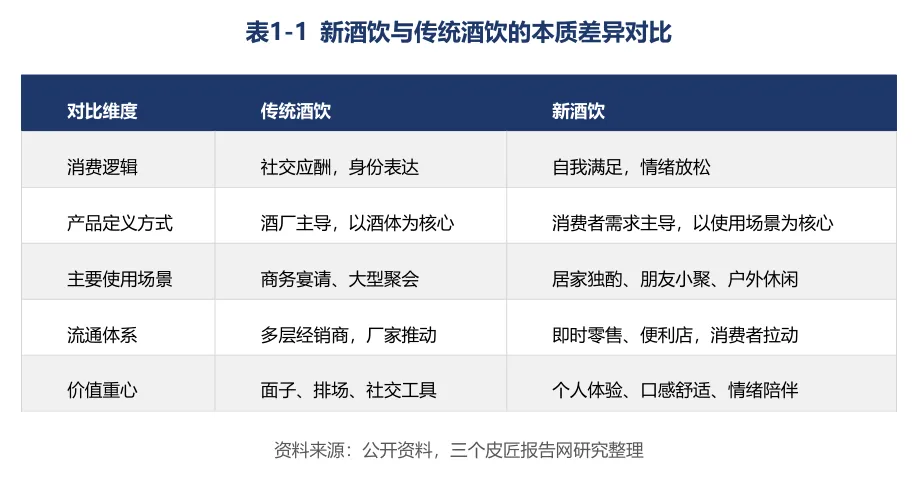 新酒饮与传统酒饮的区别涉及消费逻辑、产品定义方式、使用场景与流通体系的系统性差异。